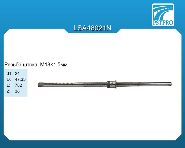 Характеристики d1: 24 D: 47,35 L: 782 Z: 38 Резьба штока M18×1,5мм